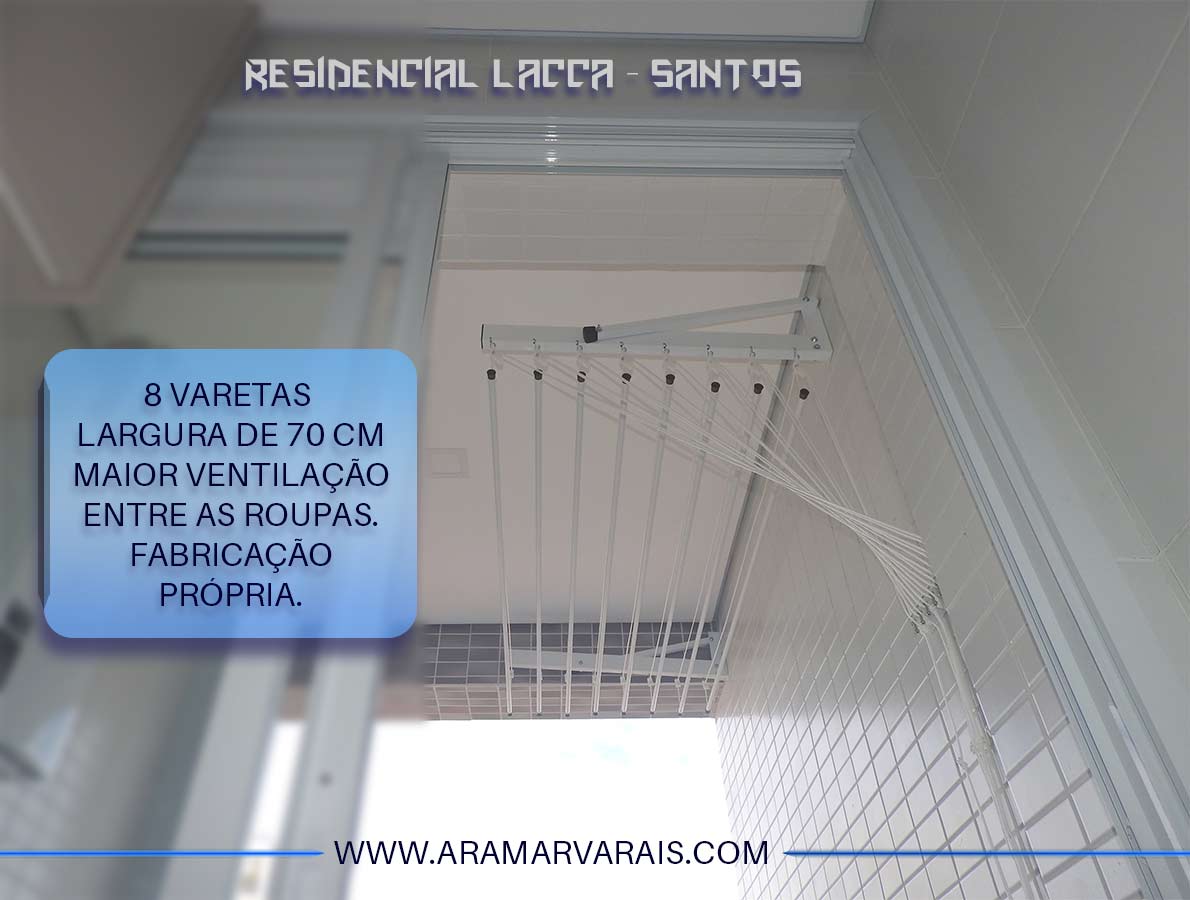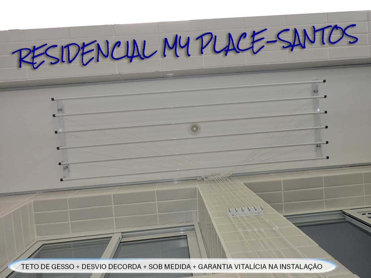 Varal sob medida no Residencial Times Square em Santos, área com teto de gesso é a nossa especialidade.