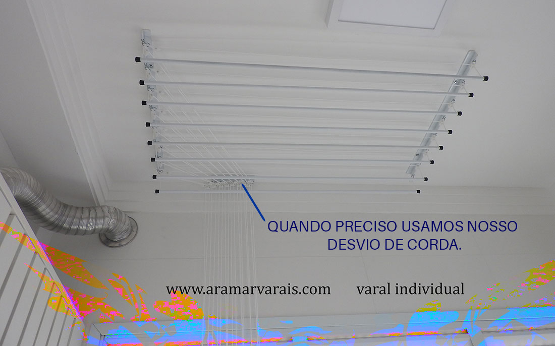 também temos a opção de desvio de corda com isso o varal pode ficar maior otimizando todo o espaço disponível! pratico e funcional.