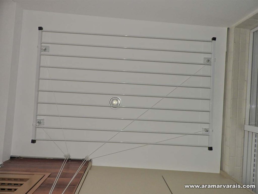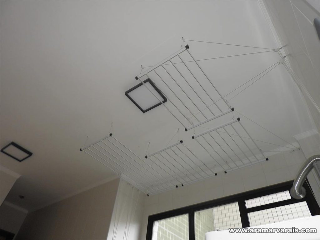 Nossa linha de varal modelo tradicional de teto feito em alumínio com pintura eletrostática branca com alta resistência a corrosão, e alta capacidade de peso comparado com os varais industrializados de alumínio, capacidade de 15 de roupas.